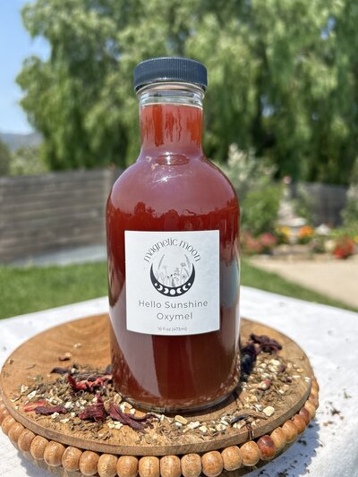 Experience the vibrant embrace of our Hello Sunshine Oxymel, crafted with a blend of all-organic Tulsi, Hibiscus, and Dandelion root. This revitalizing mix combines the calming properties of Tulsi, the refreshing tartness of Hibiscus, and the detoxifying benefits of Dandelion root, offering a burst of wellness in every sip.